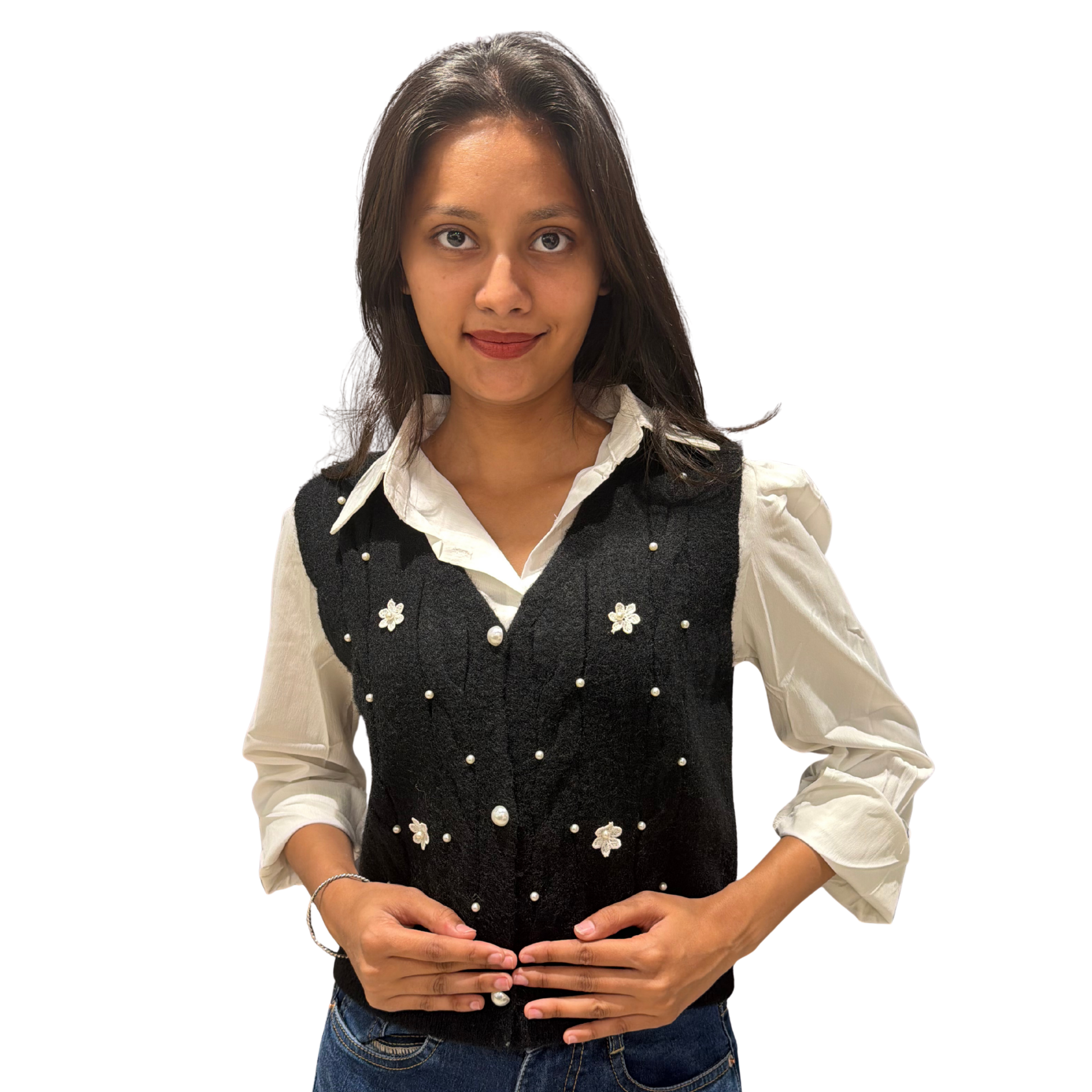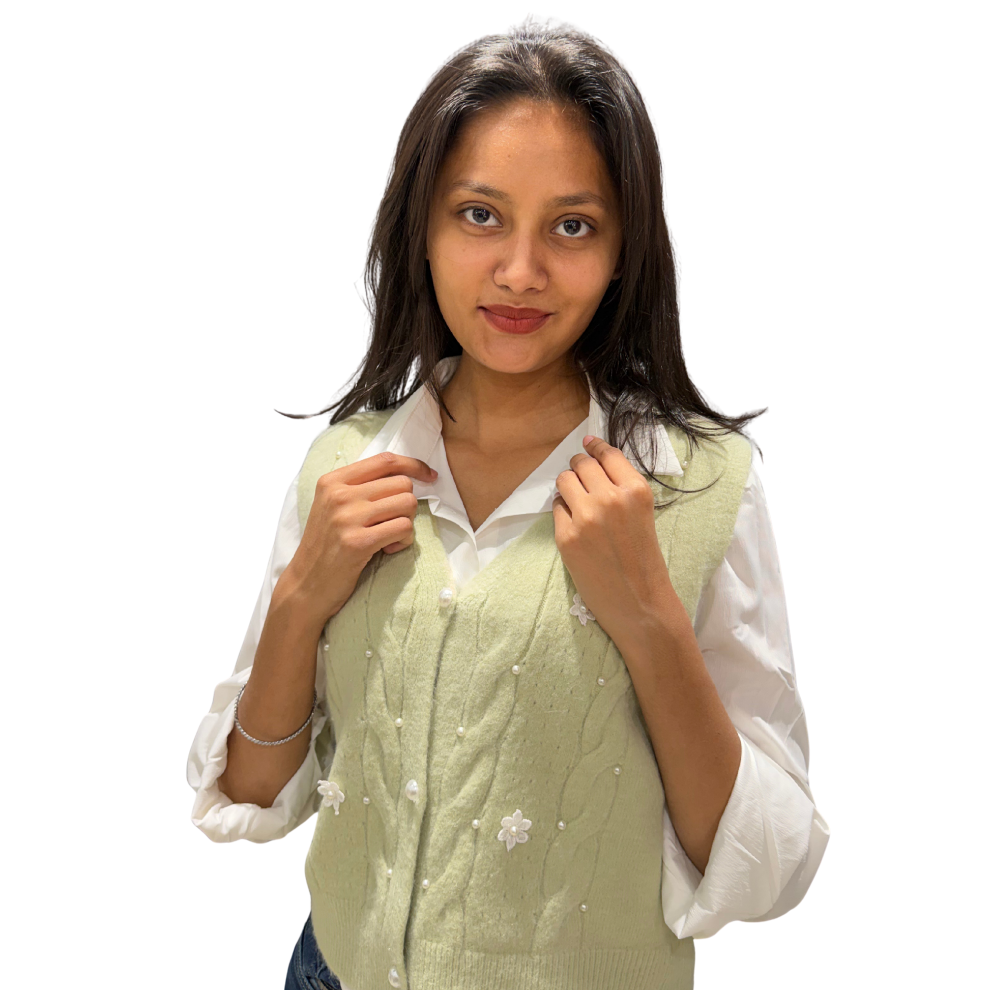 Upgrade your everyday wardrobe with this elegant Korean-style layered shirt with cardigan vest, designed for effortless chic styling. Featuring a crisp white full-sleeve shirt paired with a soft knitted sleeveless cardigan, this piece delivers a polished yet relaxed aesthetic inspired by Korean fashion trends.